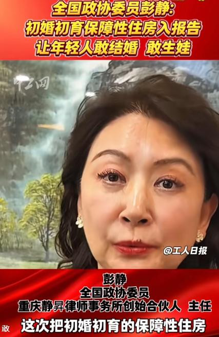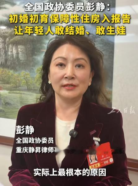 还有全国政协彭静,针对刚结婚年轻人住房困难提出的建议。