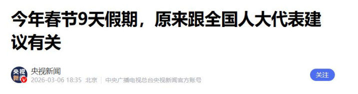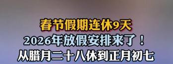 而他的这份坚持,也在2026年迎来了落地,马年春节便实现了9天的长假。