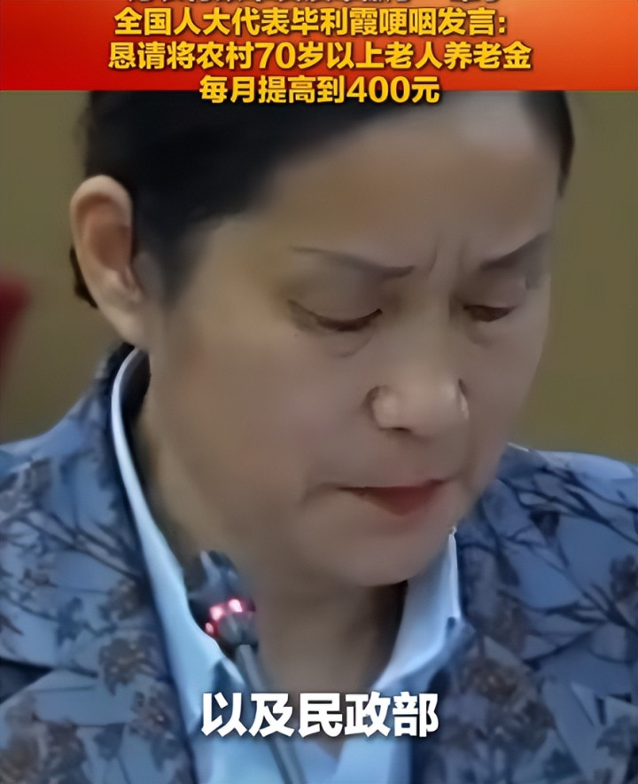 发言现场她一度动容哽咽,建议把70 岁以上农村老人的养老金提至 400 元。